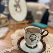 I'm in love with this ceramic coffee cup set. Perfect size for my tea and the matching plate is a bonus! 🐰☕️