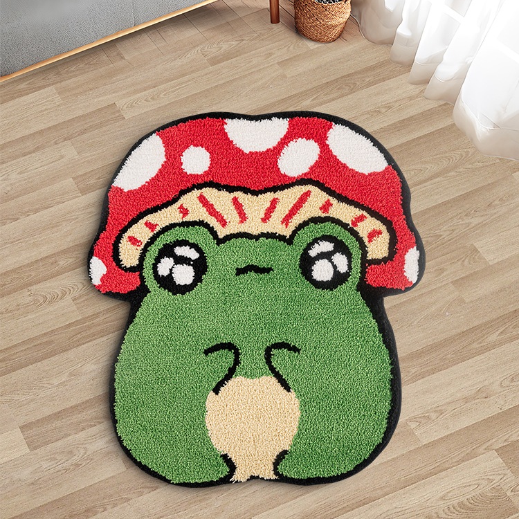 Add a splash of charm and cozy fun to your room with the irresistibly cute Frog Mushroom Tufted Rug. Designed for lovers of all things kawaii and cozy, this unique area rug features a green frog wearing an adorable mushroom cap—an instant conversation piece that will brighten any corner of your home. Whether you’re updating your bedroom, sprucing up your bathroom, or adding flair to a reading nook, this rug is the perfect blend of comfort and personality.
