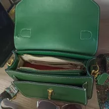 I'm absolutely in love with this classic green shoulder bag 💚 It adds a pop of color to any outfit and its size is just perfect for all my essentials. Plus, you can't beat that new leather smell.