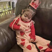 I’m very pleased with this jumpsuit for summer wear. The strawberry print is cute without overwhelming the design, and the material is soft and breathable, perfect for keeping cool. It fits true to size, with enough stretch for movement and diaper changes. After multiple washes, the fabric still looks fresh and vibrant. The jumpsuit is easy to put on and take off, which makes dressing quick. It’s become a go-to outfit for warm days, combining functionality and adorable style effortlessly.