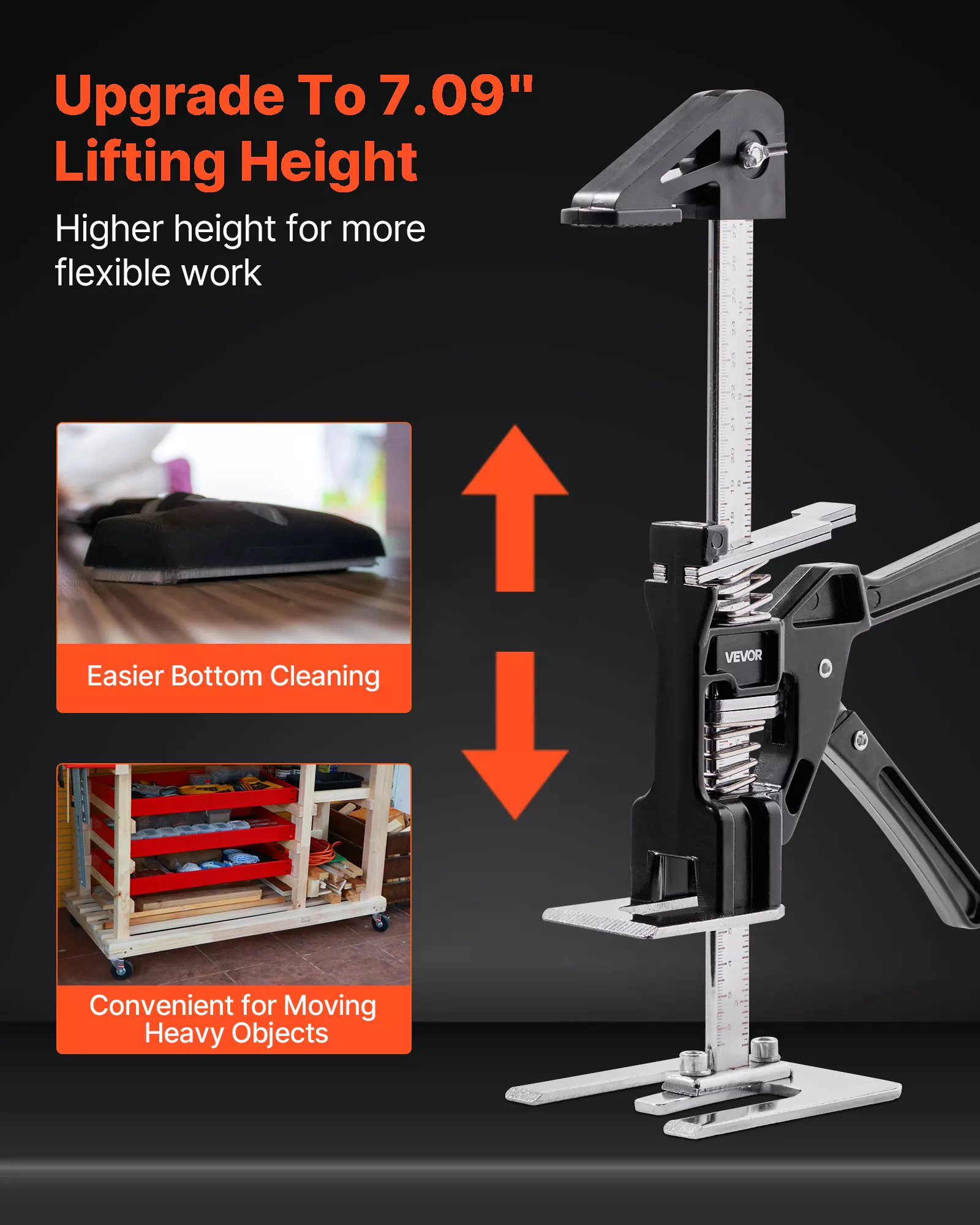 This hand lifting jack is more than just a tool—it’s a multitasker’s dream. Its slim support plate slides effortlessly into tight spots, while its strong magnetic and anti-slip design ensures items stay secure. Whether installing doors, repairing decks, assembling cabinets, or tackling general home renovations, this jack provides a reliable helping hand. It’s ideal for anyone looking to reduce strain and speed up their work, making heavy lifting manageable and safe.