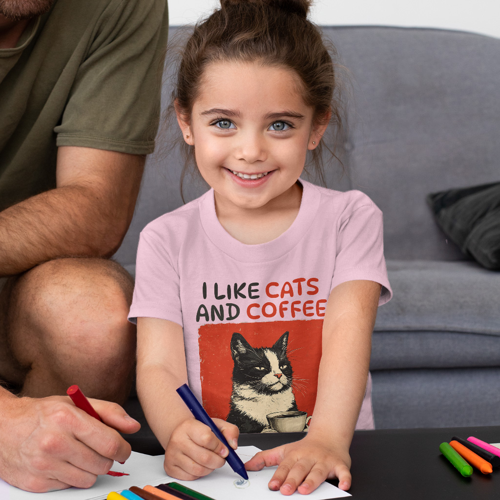 I Like Cats And Coffee Toddler Cotton T-Shirt - Funny Cat Short Sleeve Tee - Vintage Cat T-Shirt for Kids