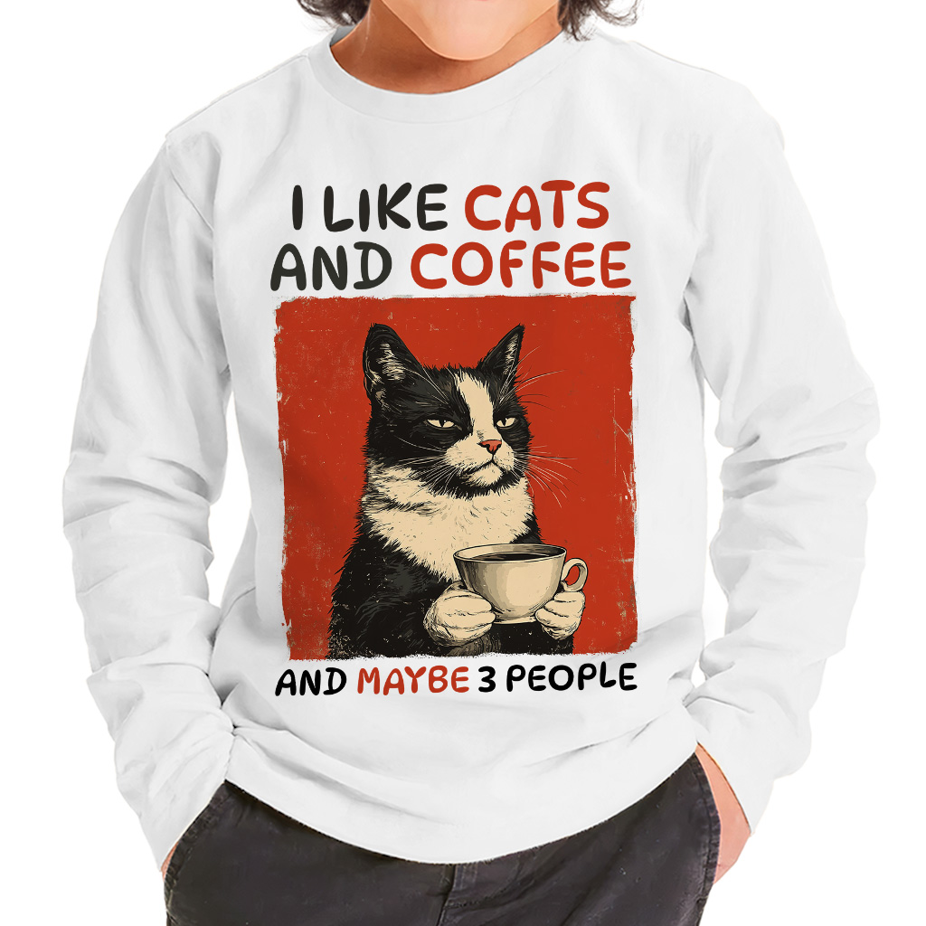 I Like Cats And Coffee Toddler Long Sleeve T-Shirt - Funny Cat Boy Girl Tee - Vintage Cat T-Shirt for Kids