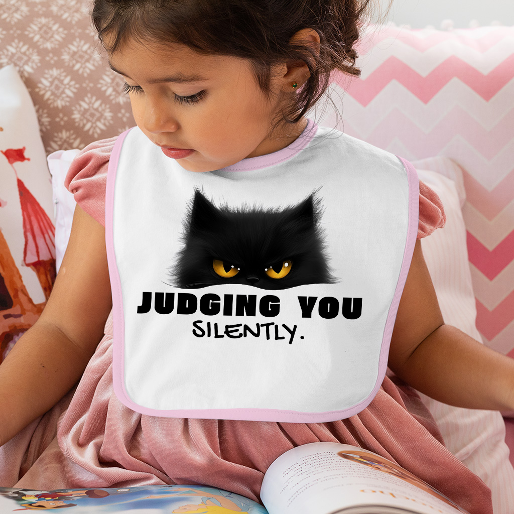 Judging You Silently Baby Bibs – Cute Kitty Baby Feeding Bibs – Black Cat Unisex Bibs for Eating