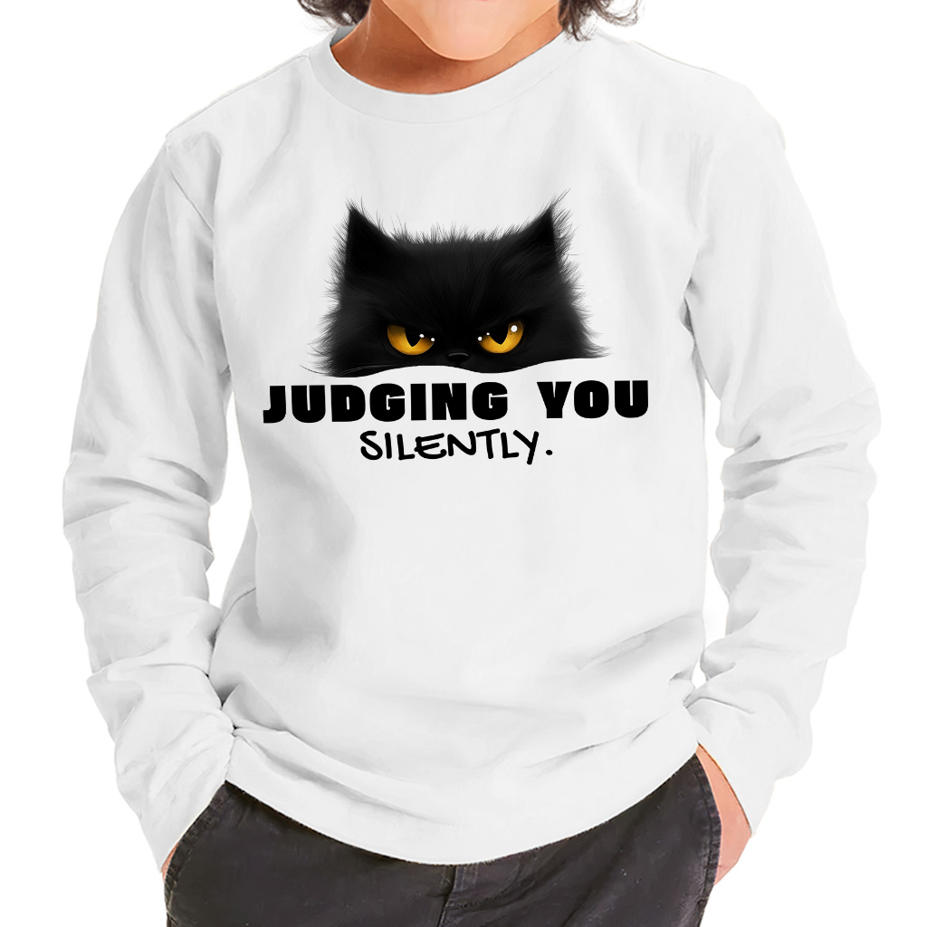 Judging You Silently Toddler Long Sleeve T-Shirt – Cute Kitty Boy Girl Tee – Black Cat T-Shirt for Kids