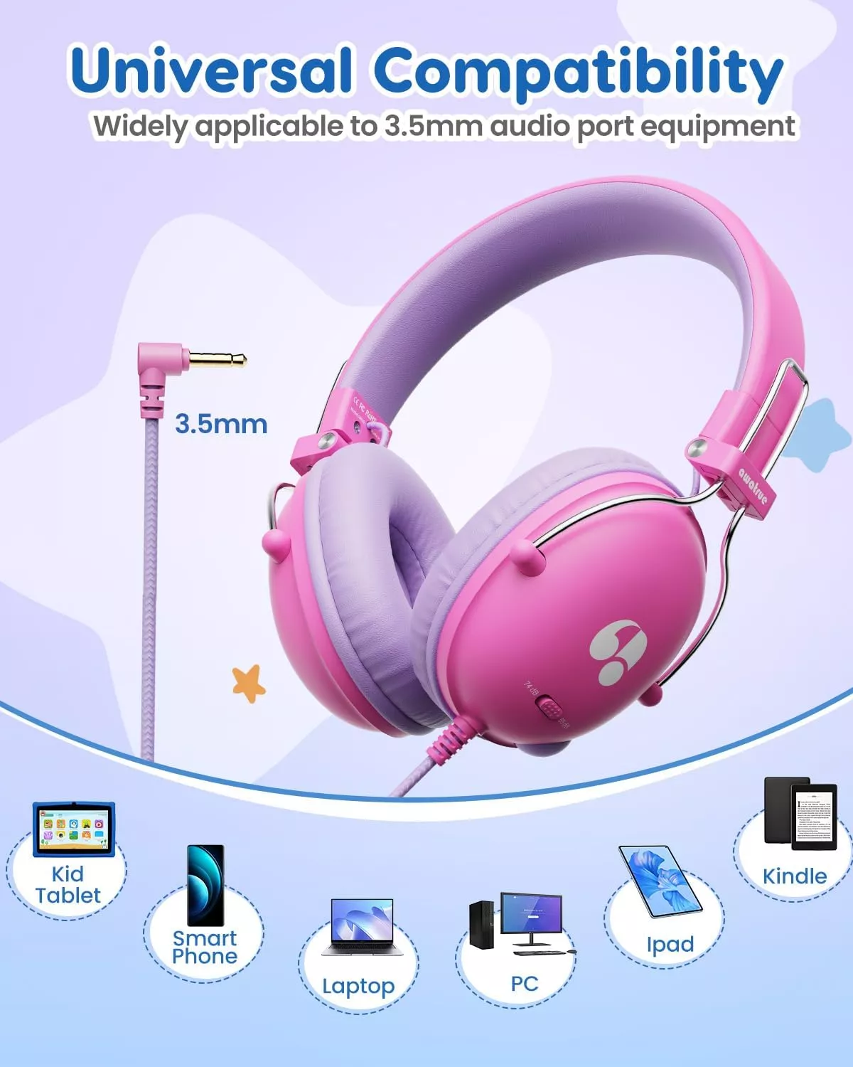 Equipped with a standard 3.5mm audio jack, these headphones work seamlessly with smartphones, tablets, laptops, PCs, MP3/MP4 players, and other devices. Whether your child is learning online, watching educational videos, or enjoying music, these headphones deliver a reliable connection and excellent sound quality.