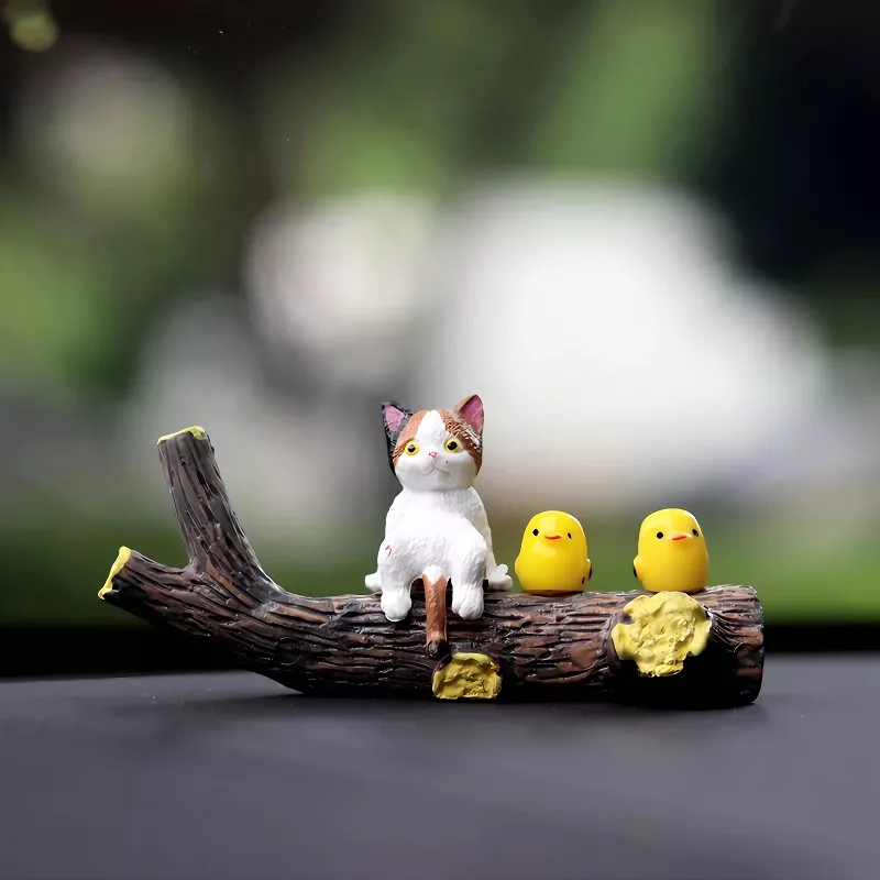 Kitten & Chick Dashboard Decoration - Cute Resin Car Interior Ornament
