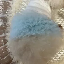 This airy tulle tutu skirt has been an absolute hit with our toy breed doggy She loves wearing it and strutting around the house showing off its puffy layers It’s super comfy too as there are no complaints from our usually fussy princess We also appreciate that despite its stylish volume, the material remains breathable making this ideal for those hot summer days