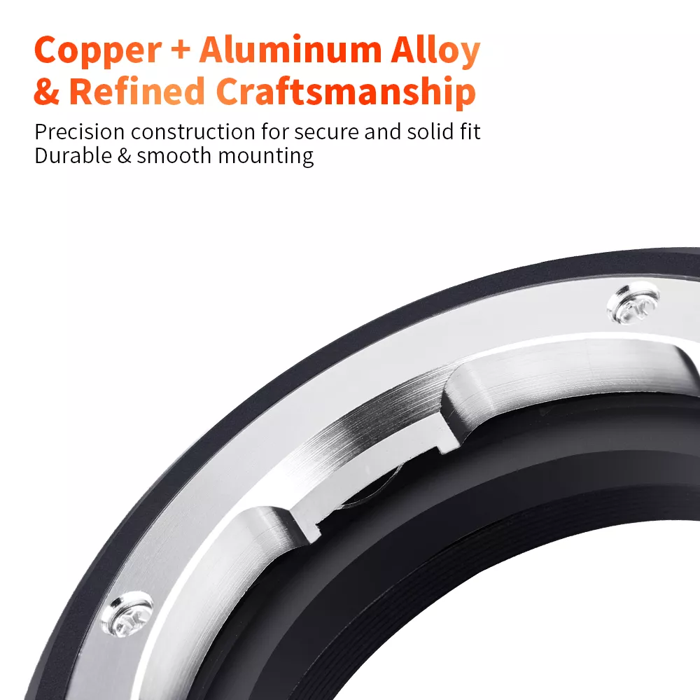 Crafted with a combination of brass and anodized aluminum, this adapter ring is made to last. The smooth surface ensures effortless mounting and removal, while its precise design guarantees a secure fit every time. Although it does not feature electronic contacts or autofocus, you gain full control with manual exposure and manual focus adjustments—ideal for photographers who value precision and creativity in their work.