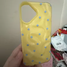 Just received this case for my iPhone 15. The fold texture is unique and feels great in hand. I'm also loving the polka dots – they add such a cute touch!