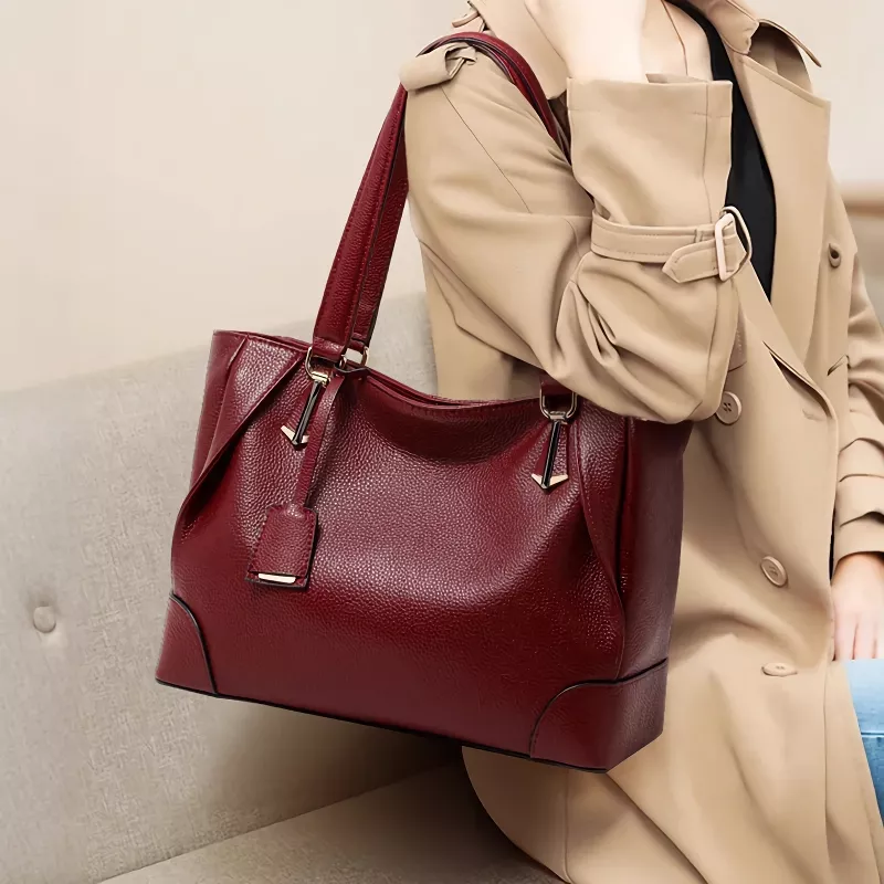 Carry your day in effortless style with this luxury burgundy leather tote, designed for women who value both elegance and functionality. Crafted from genuine leather with a smooth, supple texture, this tote offers a timeless look that transitions seamlessly from work to weekend. Its rich burgundy hue adds a sophisticated pop of color, making it a statement piece in any wardrobe.
