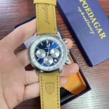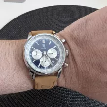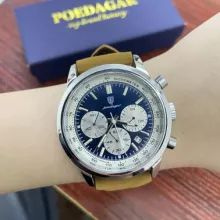 An absolute marvel of craftsmanship! This watch strikes a perfect balance between opulence and utility with its rich leather strap, precise chronograph function, and impressive waterproofing capabilities. And let's talk about those luminous hands – they add such a distinctive touch while ensuring visibility even in low-light situations.