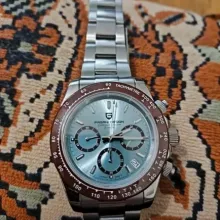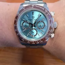 Absolutely love this timepiece. The quartz movement is smooth, the sapphire crystal clear and it's waterproof. Highly recommended!