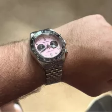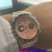 this watch is everything I wanted and more. it's so stylish with its panda dial and luminous hands, perfect for night time use. not to mention it’s waterproof too – no worries about getting caught in the rain anymore.