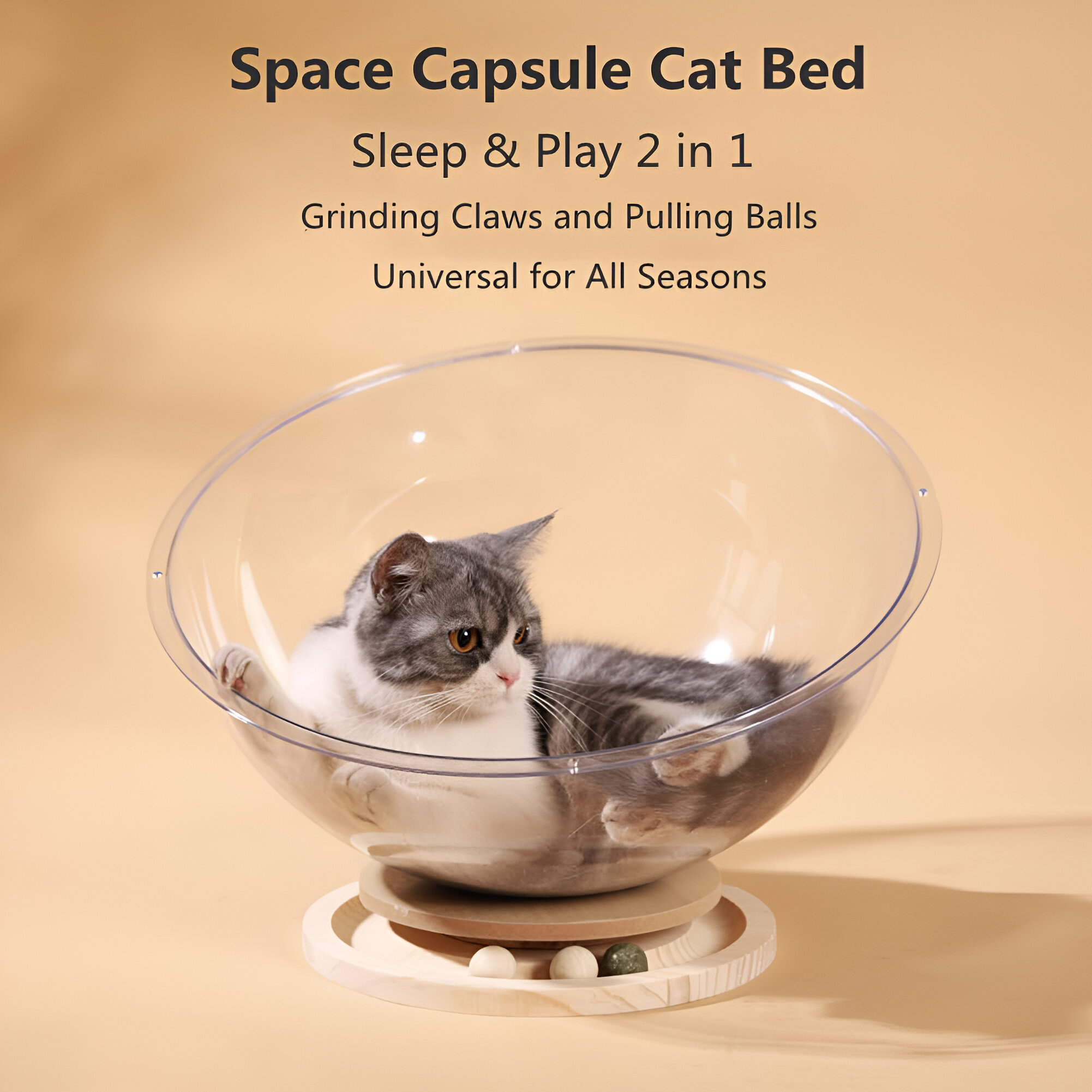 Perfect for all seasons, this super spacious cat nest provides your kitty with a breathable, all-weather hideout. Whether it’s a chilly winter afternoon or a warm summer morning, this capsule bed keeps your cat comfortable year-round. The clever rotary table design lets your cat choose their angle and enjoy their surroundings from every side – just like their own private observatory.