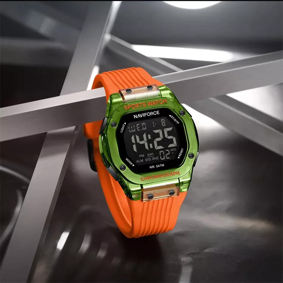 Unlike ordinary digital watches, this model blends sporty performance with a refined design. Its crystal-clear acrylic window, precise digital movement, and array of practical features make it more than just a timepiece – it’s a statement of readiness and style.