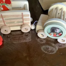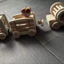 This wooden train set has been a fantastic addition to our playroom. The design is so charming, it's almost like having an extra piece of decor! But most importantly, my child absolutely loves it. They've spent countless hours connecting and disconnecting the spliced train cars - such a clever way to teach problem-solving skills. And they're always pleasantly surprised by the bell sound when they push or pull the trolley along.