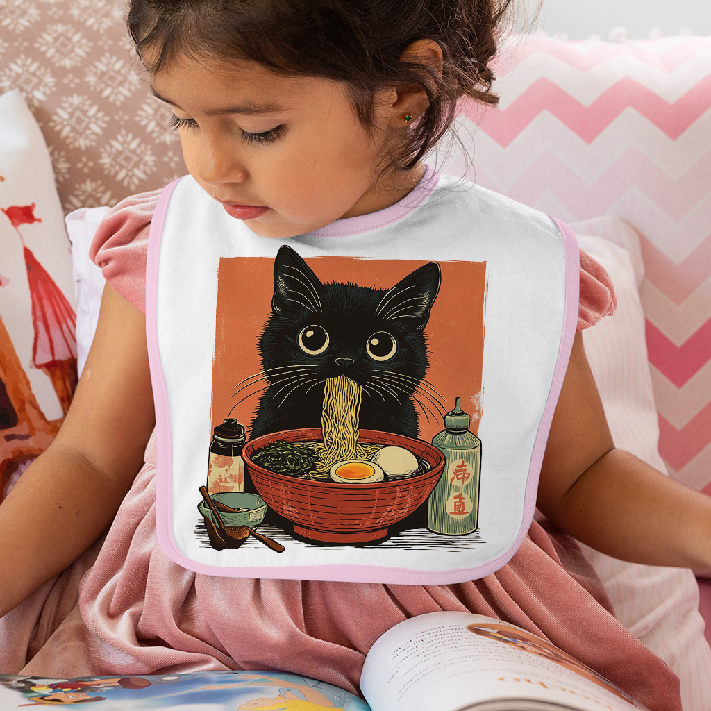 Noodle Cat Baby Bibs – Ramen Cat Baby Feeding Bibs – Foodie Unisex Bibs for Eating