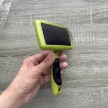 This lightweight pet grooming tool has been such an asset in our home! Not only does it keep our dog's fur looking neat and shiny, but he also seems more relaxed after each brushing session due to the soothing massage effect of the bristles.