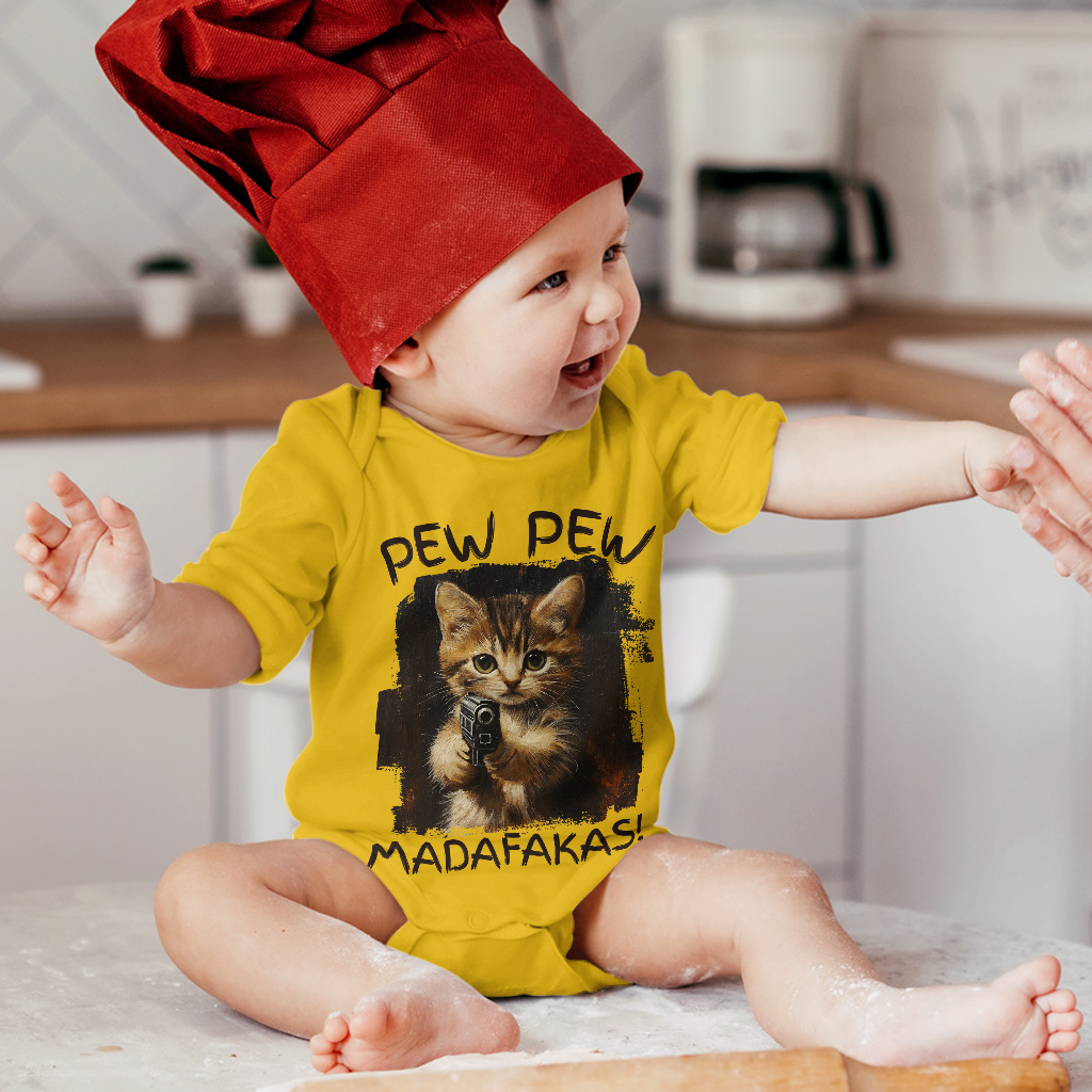 Pew Pew Madafakas Baby Onesie – Funny Kitten Baby Bodysuit – Cat Lover Baby One-Piece