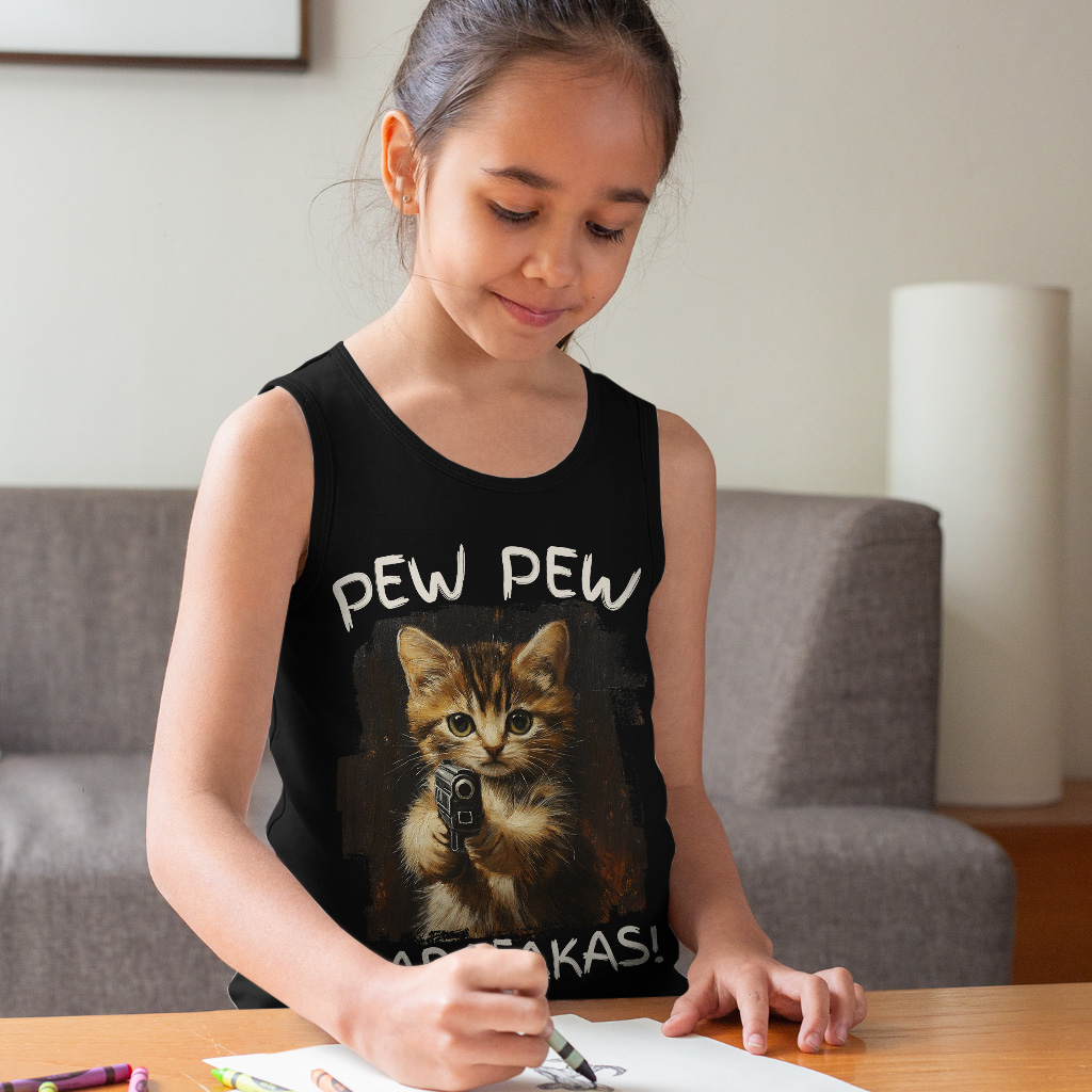 Pew Pew Madafakas Kids’ Jersey Tank – Funny Kitten Sleeveless T-Shirt – Cat Lover Kids’ Tank Top