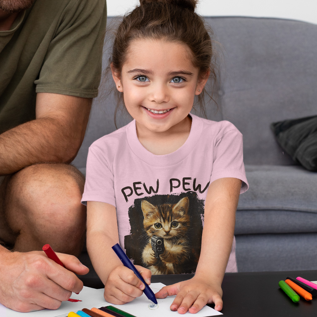 Pew Pew Madafakas Toddler Cotton T-Shirt - Funny Kitten Short Sleeve Tee - Cat Lover T-Shirt for Kids