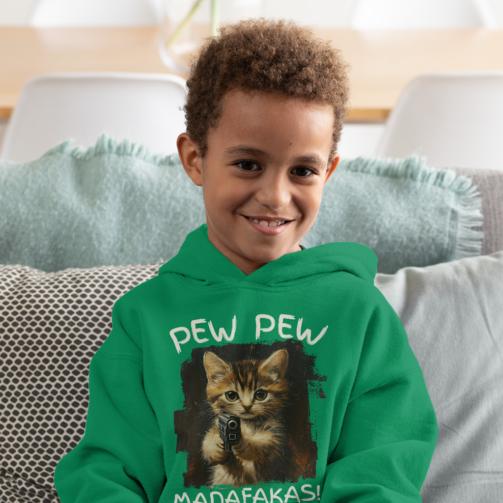 Pew Pew Madafakas Toddler Hoodie – Cat Lover Hoodie for Kids – Funny Kitten Hooded Pullover