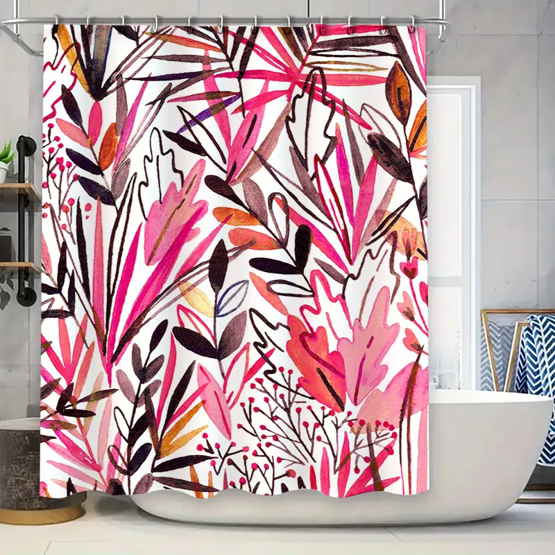 Turn your daily routine into a refreshing escape with our Pink Floral Shower Curtain with Black Leaves. Designed to blend timeless beauty with modern flair, this eye-catching curtain adds a touch of personality and charm to any bathroom space. The bold pink florals paired with striking black leaf silhouettes create a unique, artistic contrast that makes your bathroom feel instantly more stylish and inviting.