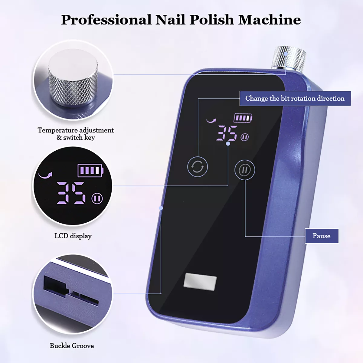 Unlike ordinary nail tools, this professional nail grinder is built for efficiency and comfort. Its sleek portable design makes it perfect for at-home beauty routines or even for professional nail technicians on the go. The rechargeable feature means no more messy cords, while the LED display helps you stay in control of speed and power. With low heat, low noise, and a comfortable grip, every manicure becomes a relaxing experience instead of a chore.