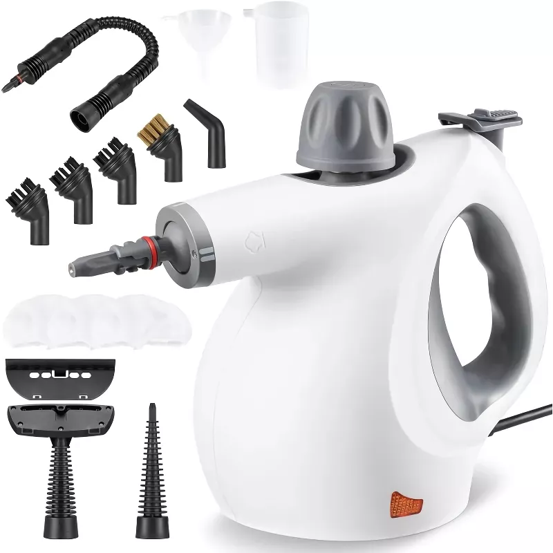 This handheld steam cleaner is more than just a cleaning tool – it’s a game changer. Designed to handle the toughest cleaning challenges, it offers both power and convenience in a compact, easy-to-use form. The 14-piece accessory set ensures that no job is too big or small, giving you the right tool for every task. The steam cleaner heats up in just minutes, saving you time while providing lasting power for up to 10 minutes of continuous use. Whether you’re cleaning kitchen surfaces, refreshing your bathroom, or sanitizing floors, this steamer delivers professional-level results with every use.