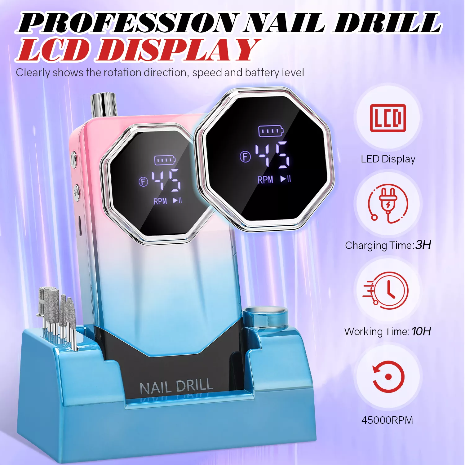 Professional 45000RPM Rechargeable Nail Drill Machine with LCD Display
