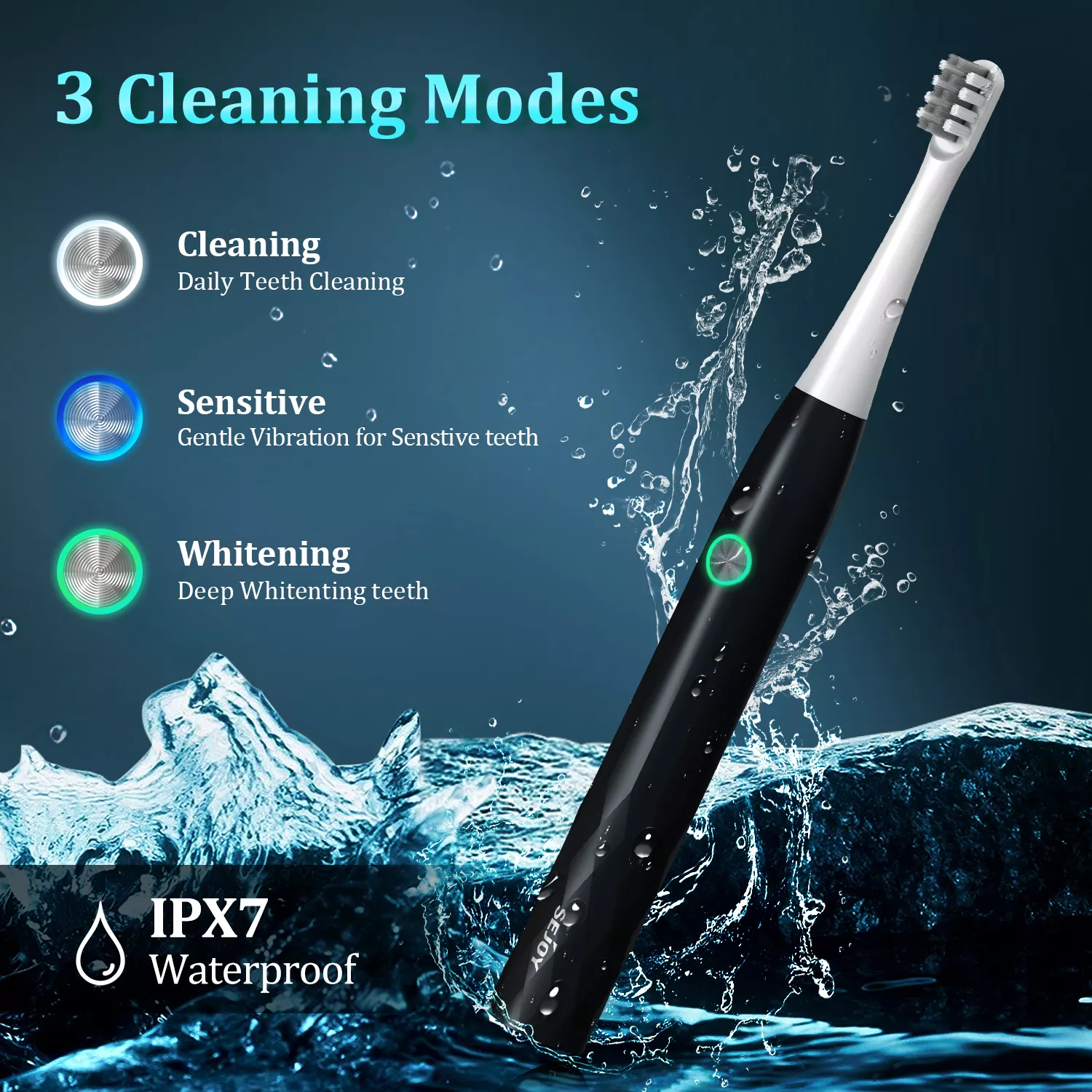 Transform your daily oral care routine with this powerful sonic electric toothbrush. Designed with advanced acoustic wave technology, it delivers between 10,000 to 30,000 movements per minute to sweep away plaque and impurities more effectively than a manual toothbrush. With three smart modes, you can tailor every brushing session to your needs—whether you want a gentle clean, deep cleaning, or whitening power for a radiant smile.