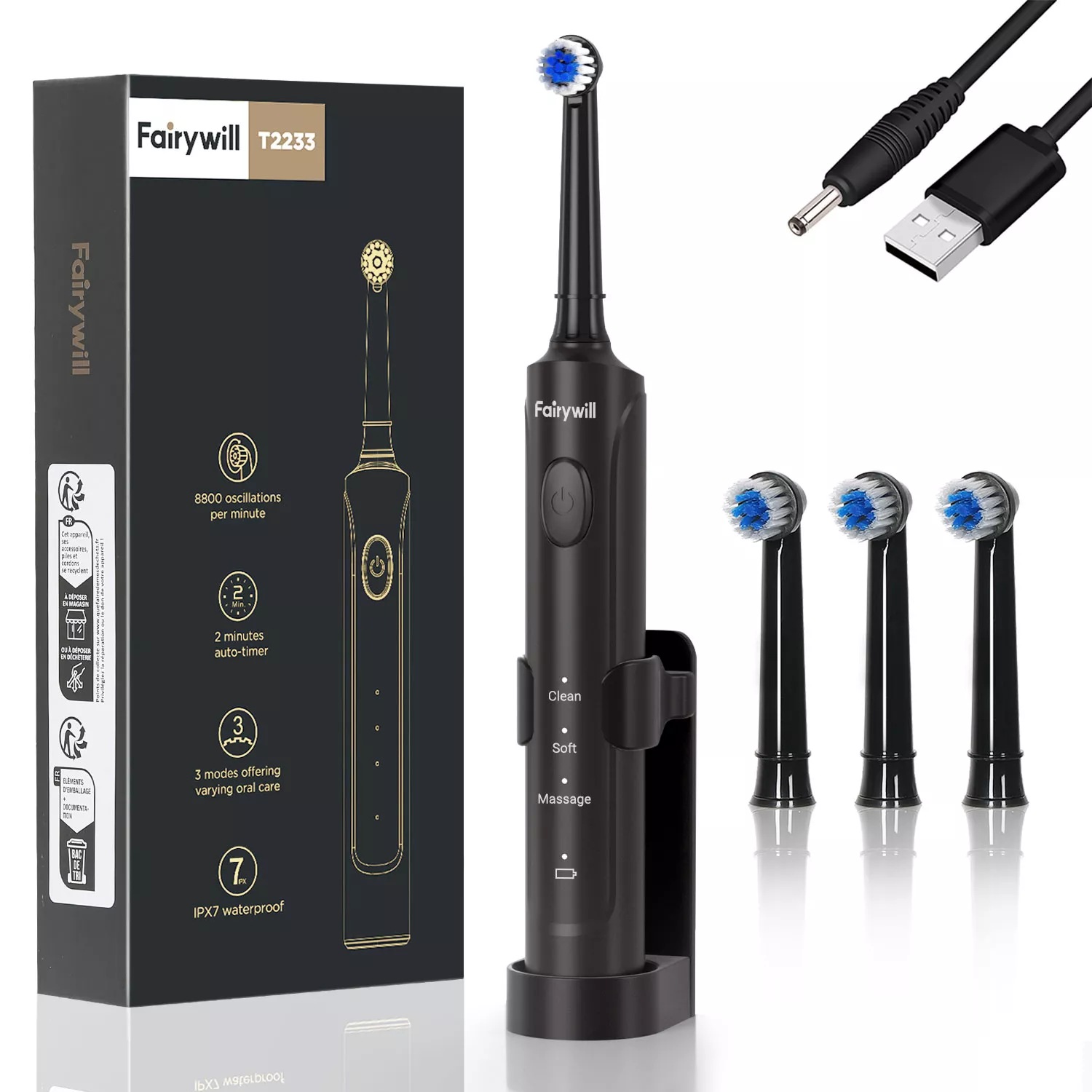 Rechargeable Sonic Electric Toothbrush with 4 Replacement Heads – Powerful Rotation, 3 Modes