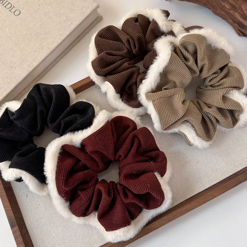 This accessory combines the nostalgic feel of retro corduroy with modern practicality. Its large, plush design not only keeps your hair secure but also serves as a stylish statement piece. The simple yet eye-catching geometric pattern ensures it complements almost any outfit. Whether you’re styling a messy bun for a relaxed afternoon or adding the finishing touch to your weekend look, this scrunchie and headband set elevates your hair game effortlessly.