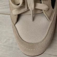 These sneakers are an absolute revelation. The limited-edition retro design is a fresh take on the iconic German squash sneakers, and I must say they've done justice to the original style. They're breathable and lightweight which makes them perfect for summer wear and all-day comfort. What's more, the mixed material upper that combines genuine suede with durable fabric gives these shoes a unique look that stands out in any crowd. But it's not just about looks - the classic herringbone sole offers vintage style along with reliable grip making them versatile enough to match my casual outfits from shorts to denim! Plus, there's this subtle palm wreath detail at the heel which adds a winning finish!