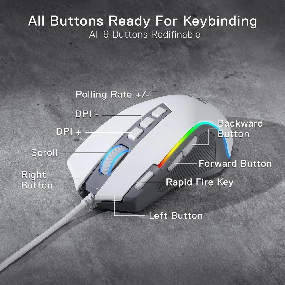With nine programmable buttons, you can map commands, macros, and key functions exactly the way you like. The included software allows full control over sensitivity levels, lighting effects, and button assignments, making this mouse a powerful tool for both gaming and productivity. Whether you’re fine-tuning sniper shots in a shooter, controlling spells in an RPG, or managing quick-builds in a strategy game, this mouse adapts to your playstyle with ease.