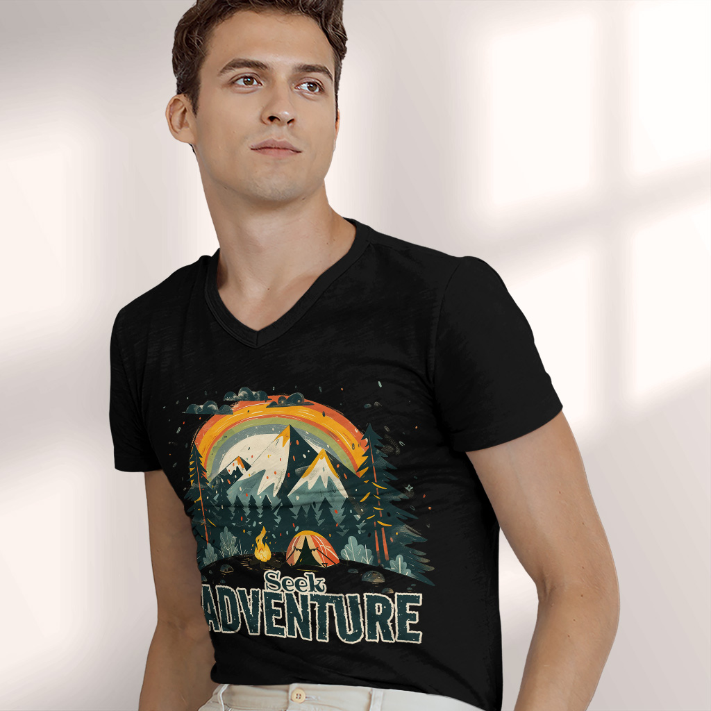 Seek Adventure V-Neck T-Shirt – Vacation Basic T-Shirt – Travel Tee