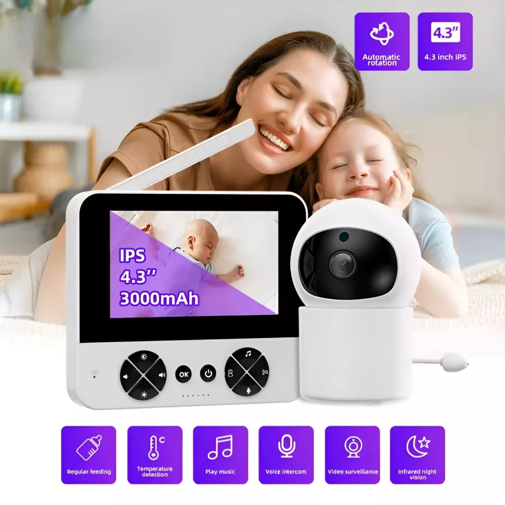 Keep a close eye on your little one with this intelligent baby monitor designed to bring parents unmatched comfort and convenience. Featuring a crystal-clear 4.3-inch IPS color display, this monitor gives you a vivid view of your baby day and night. With wireless connectivity, easy touchscreen control, and advanced features, it ensures you never miss a precious moment.