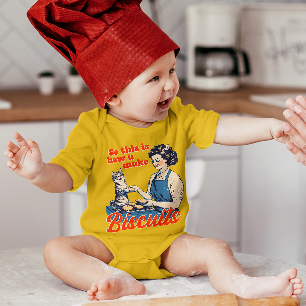 So This Is How You Make Biscuits Baby Onesie – Cat Kneading Baby Bodysuit – Retro Cat Baby One-Piece