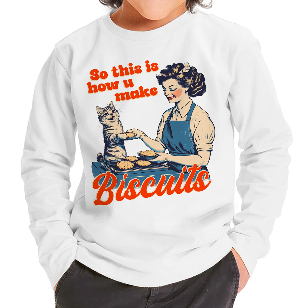 So This Is How You Make Biscuits Toddler Long Sleeve T-Shirt – Cat Kneading Boy Girl Tee – Retro Cat T-Shirt for Kids