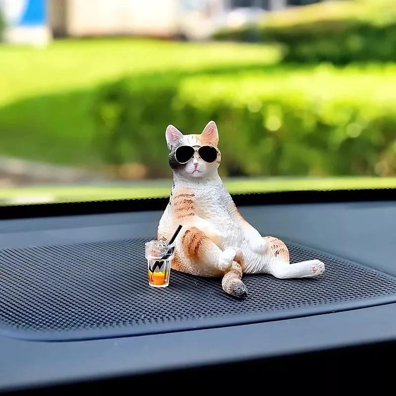 Stylish Resin Cat Car Ornament – Sunglasses & Soda Drink Decoration for Car Interiors