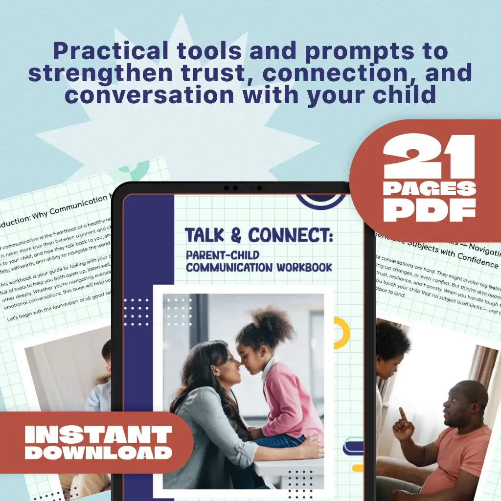 Strengthen your bond, build trust, and create open conversations with your child using the Talk & Connect: Parent-Child Communication Workbook. This practical, engaging, and parent-friendly digital guide is designed to help you go beyond “How was your day?” and open the door to honest, meaningful dialogue. Whether you’re navigating everyday chats, tricky emotions, or sensitive subjects, this guide offers the tools and prompts you need to connect on a deeper level. Perfect for parents, caregivers, and educators who want to create lasting emotional connections with the children in their lives.