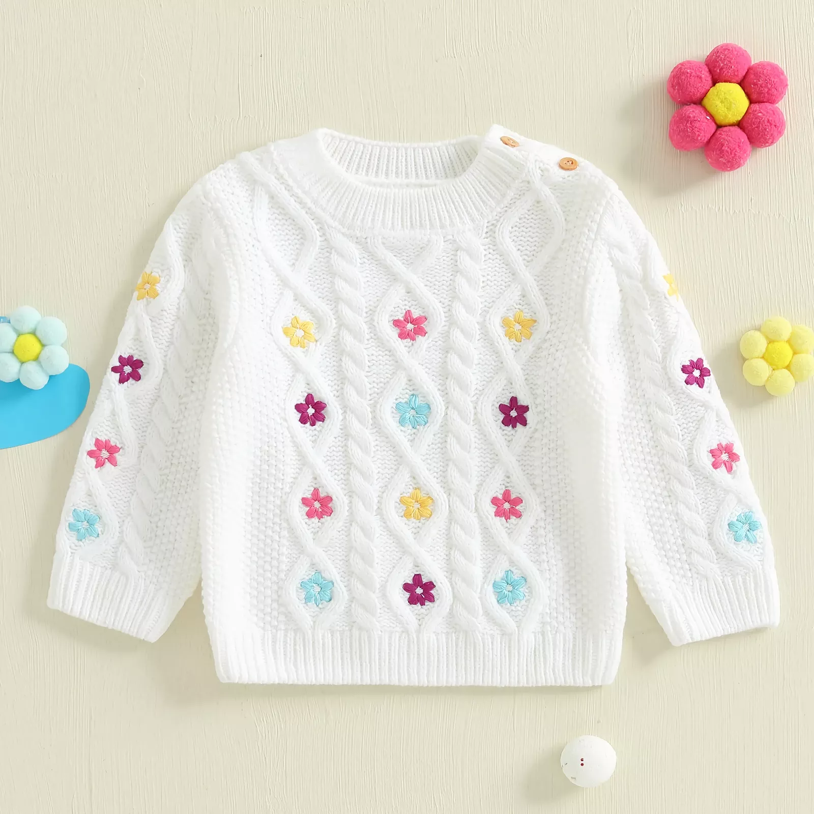 This knit sweater is more than just clothing – it’s a wardrobe essential for toddlers. It keeps your child cozy without feeling bulky, making it great for outings, family gatherings, or simply playing indoors. The timeless design ensures it pairs easily with jeans, leggings, or skirts, giving you endless styling options. Its embroidered flowers make it extra special, adding charm to a practical piece.