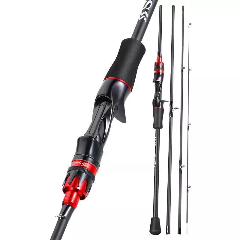 Take your fishing game to the next level with this ultralight carbon fiber casting rod. Measuring 6.9ft in length and designed in 4 easy-to-carry sections, it delivers a perfect balance of strength and portability. Whether you’re casting off the rocks, drifting on a boat, or relaxing by a quiet stream, this rod is made to perform in every setting. Its fast action and sensitive build ensure you never miss a strike, even with the lightest lures.
