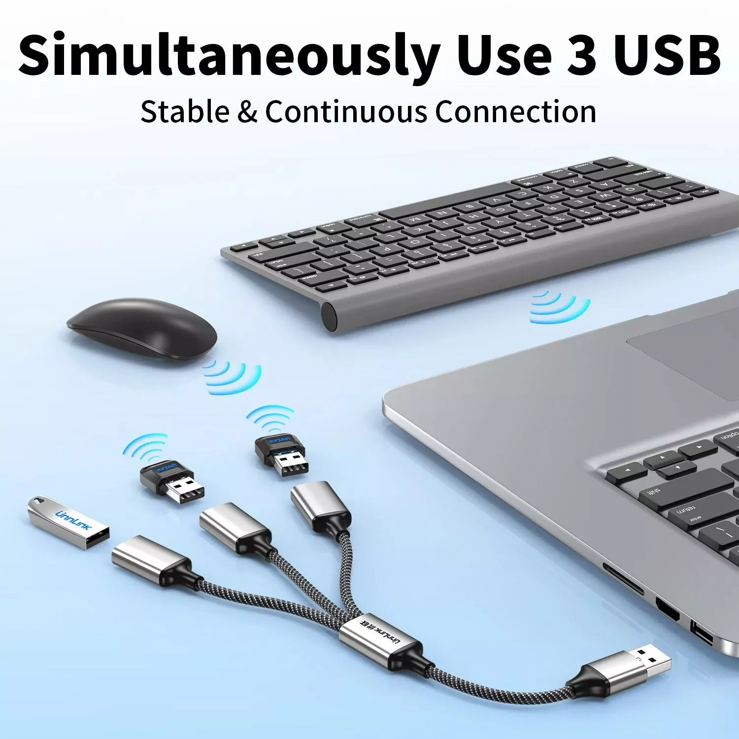 • 3 USB Ports: Expand one USB port into three, connecting multiple devices simultaneously.