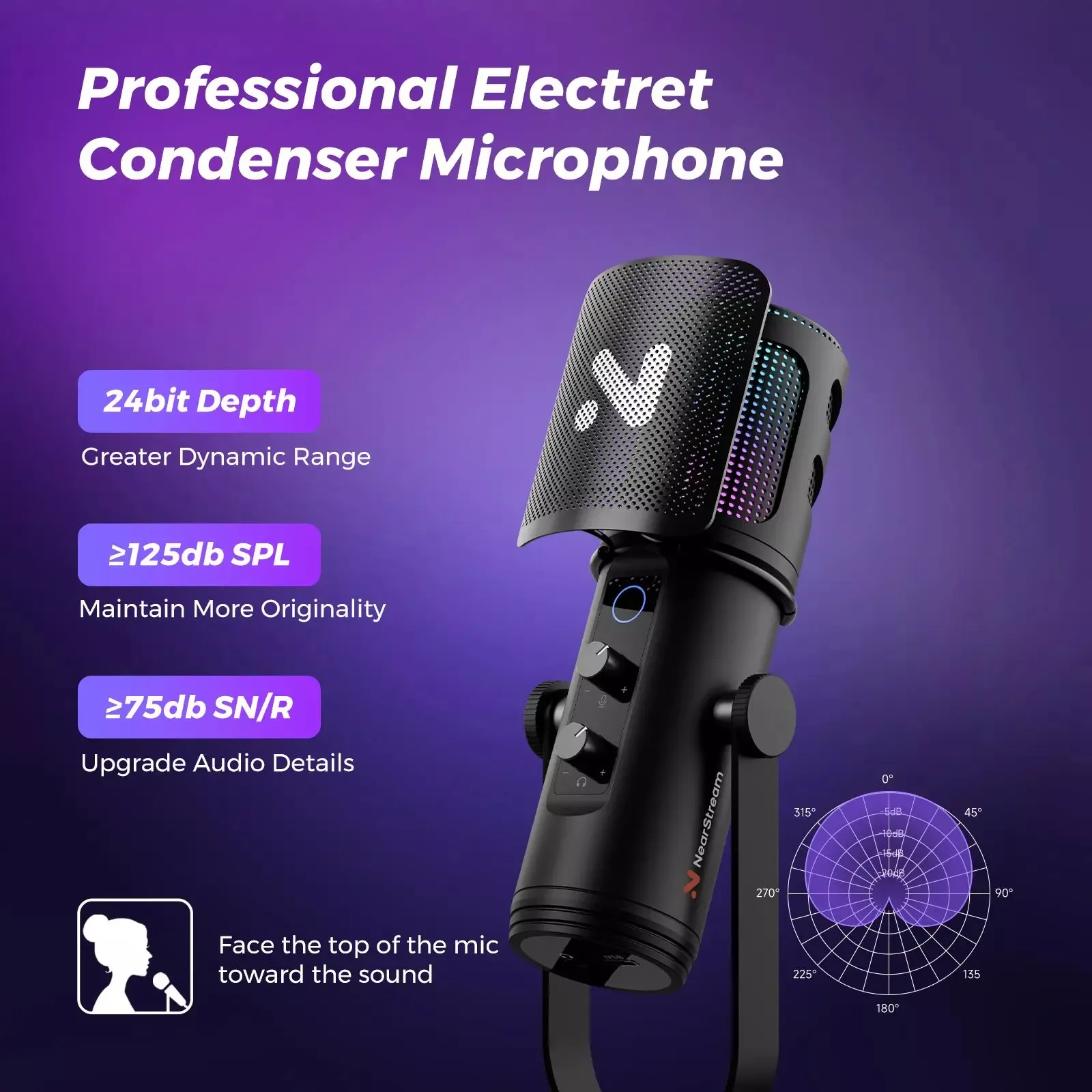 This microphone combines high-end performance with eye-catching aesthetics. Featuring a cardioid pickup pattern, it isolates your voice for crystal-clear communication, while the adjustable boom arm and integrated pop filter ensure the perfect position and smooth sound. Add a pop of personality to your setup with 8 customizable RGB lighting modes or keep it professional with the lights off—your choice. Plus, real-time monitoring with a 3.5mm headphone jack lets you hear your voice exactly as your audience does, all with zero latency.