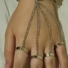 What a unique piece! The finger chains give it an edgy touch while the vintage design adds a bit of sophistication. It's comfortable to wear and fits perfectly. I've been getting so many compliments on it!