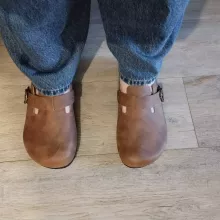 these mules are everything i could ask for in a shoe they’re stylish comfortable and so easy to wear the crazy horse leather gives them such an awesome vintage look which only gets better with age plus the adjustable buckle guarantees i get just the right fit