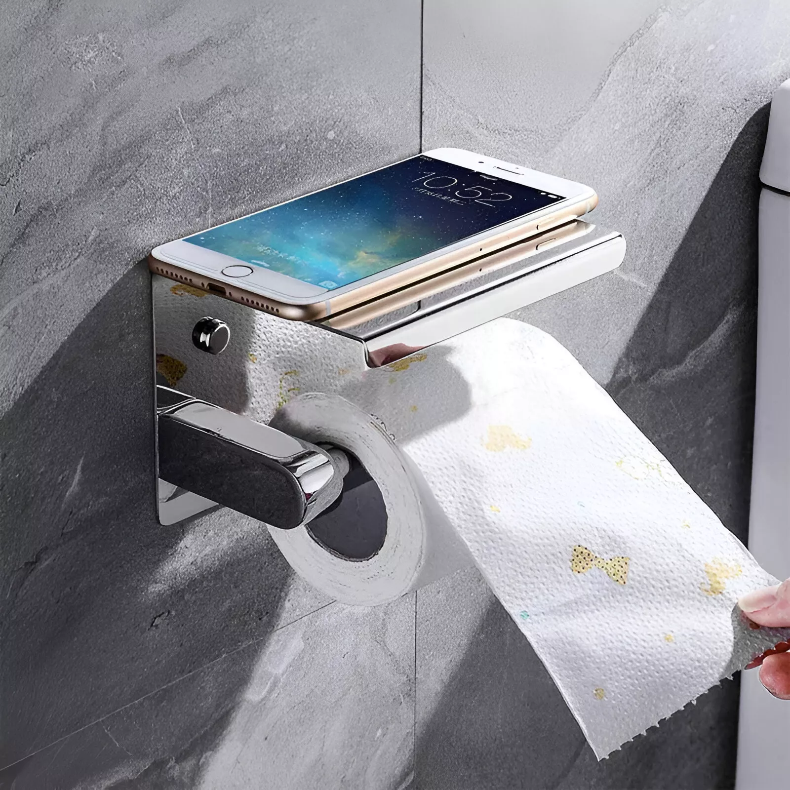 Upgrade your bathroom with the perfect combination of style, strength, and smart design. This wall-mounted stainless steel toilet paper holder with a built-in phone shelf is more than just a bathroom essential – it’s a modern convenience that keeps your space organized while adding a polished, sophisticated touch. Made from premium-grade stainless steel and finished in a mirror-like polished chrome, it’s designed to shine for years without losing its luster.
