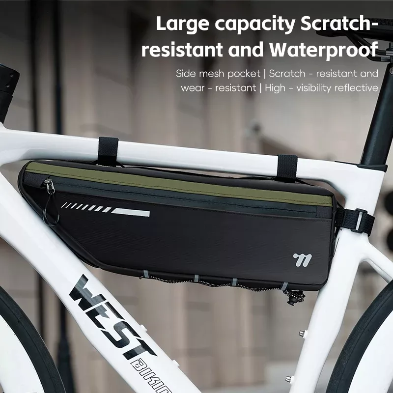 Take your cycling experience to the next level with this waterproof 2.6L front frame bike bag designed for both mountain and road biking. Offering the perfect blend of style, durability, and convenience, it ensures that all your essentials are within easy reach while you ride. Whether you’re commuting to work, enjoying a weekend ride, or tackling rugged trails, this bag keeps your gear safe, dry, and well-organized.